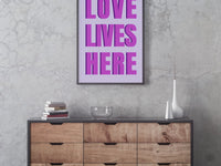 Love Lives Here. A simple, comforting reminder that warmth, connection and care are always present in your space.