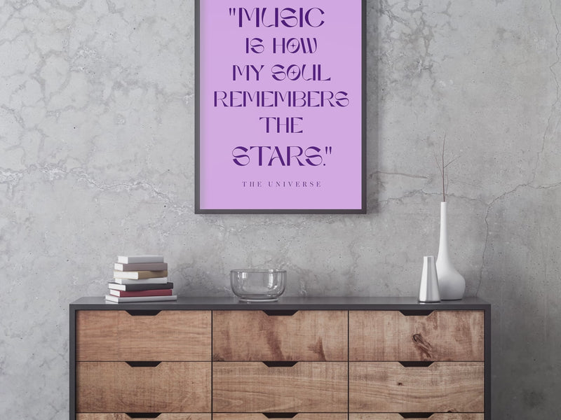 Music moves beyond sound, it becomes memory, emotion and cosmic connection. This dreamy, celestial-inspired quote wall art is a tribute to music as a soul language. Reminding us that rhythm, melody and vibration are written into the stars themselves.